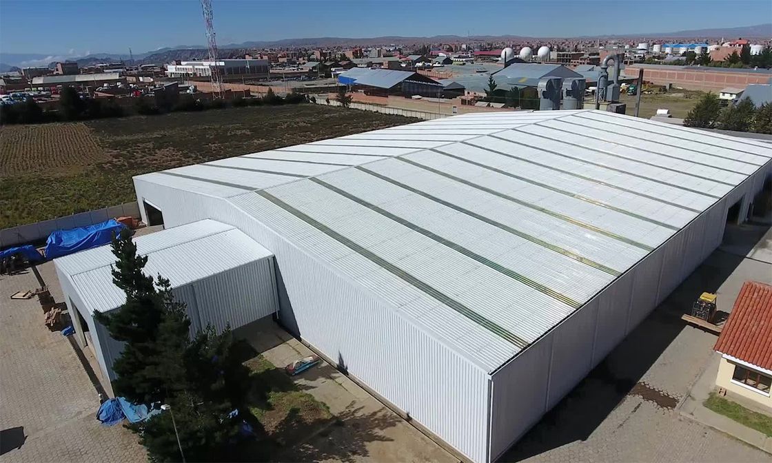 Muur en dak: | Stalen bekledingplaat, sandwichpaneel | Kolommen en balken: | H-sectie staal |
